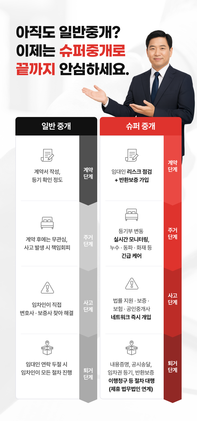 임대차 사고, 혼자 감당하지 마세요. 언제나 슈퍼중개가 함께합니다.
